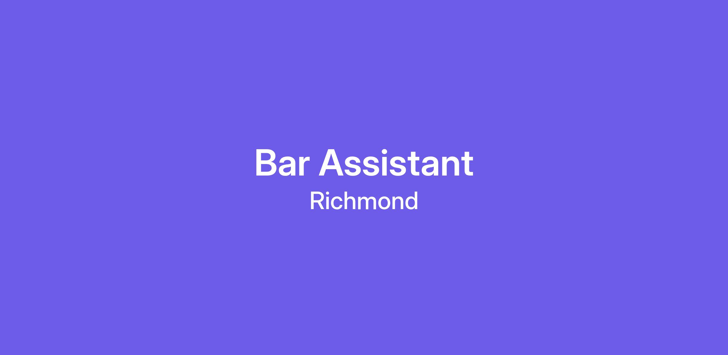 a Bar Assistant you will work closely with the Bar Manager, plus Front of House