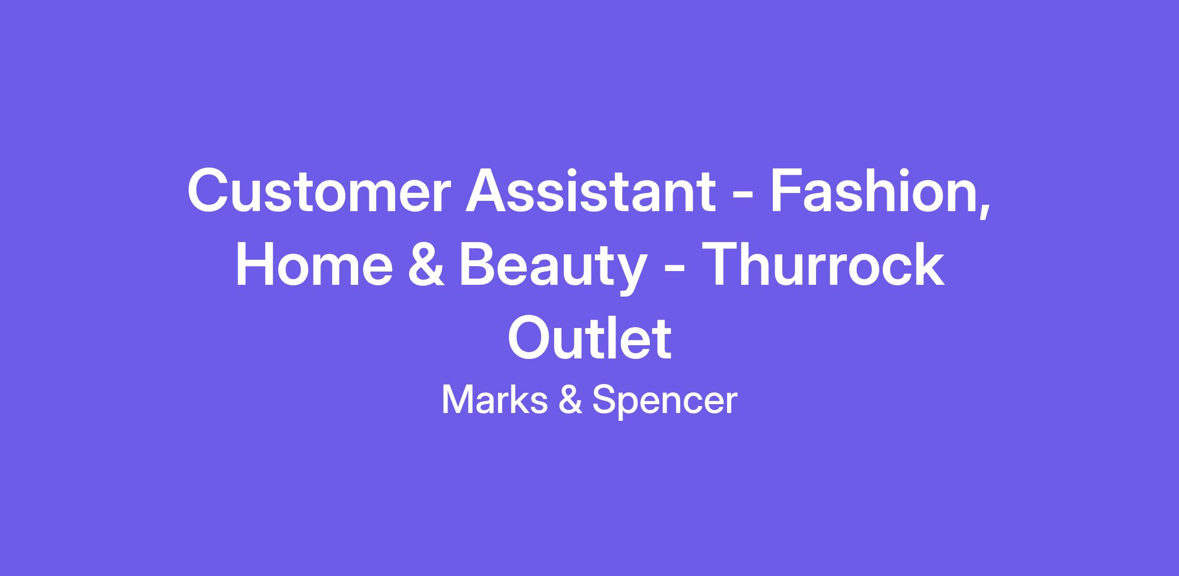 Join M&S as a Customer Assistant in our Fashion, Home & Beauty section, where you’ll play a vital frontline role in delivering style advice and five-star service. This isn’t just a retail job – it’s a role for people who love pace, want to work hard and play their part in delivering our transformation.