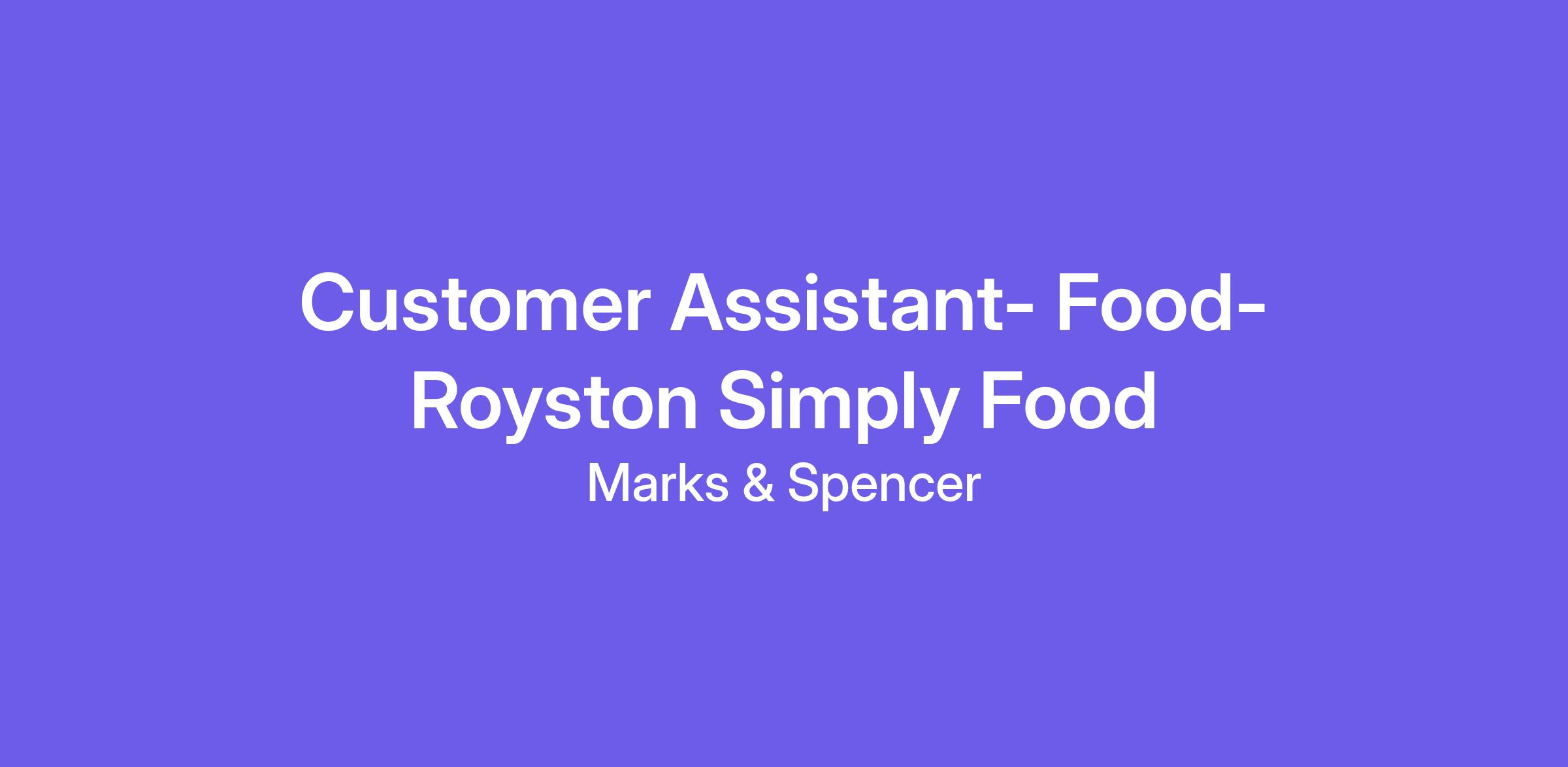 Join M&S as a Customer Assistant in our Food section, where you'll become be at the frontline of the UK’s fastest growing retailer. We’re not just looking for someone to fill shelves – we need down-to-earth colleagues who thrive under pressure, deliver five-star service at pace, and embrace the transformation we're driving.