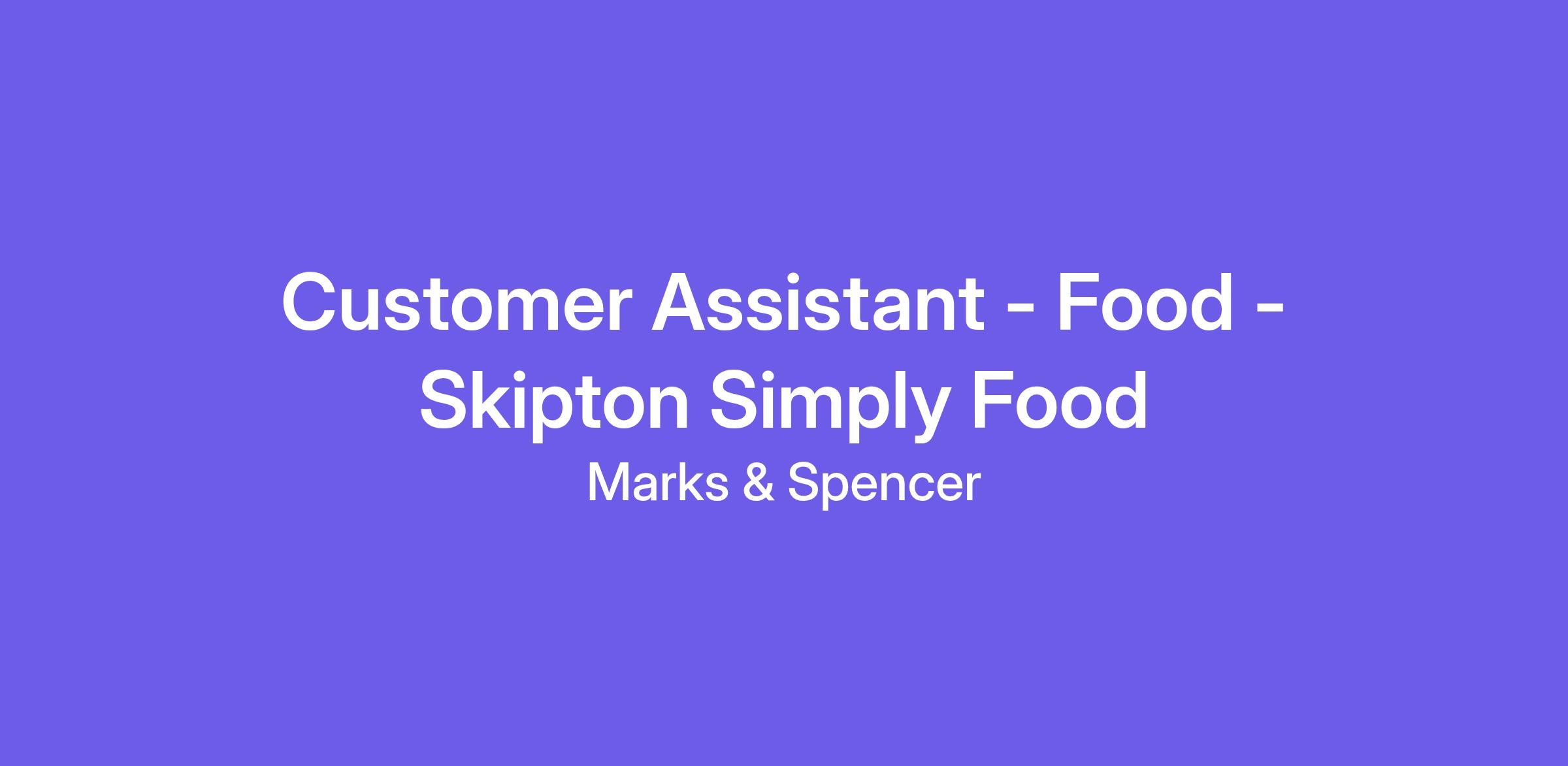 Join M&S as a Customer Assistant in our Food section, where you'll become be at the frontline of the UK’s fastest growing retailer. We’re not just looking for someone to fill shelves – we need down-to-earth colleagues who thrive under pressure, deliver five-star service at pace, and embrace the transformation we're driving.