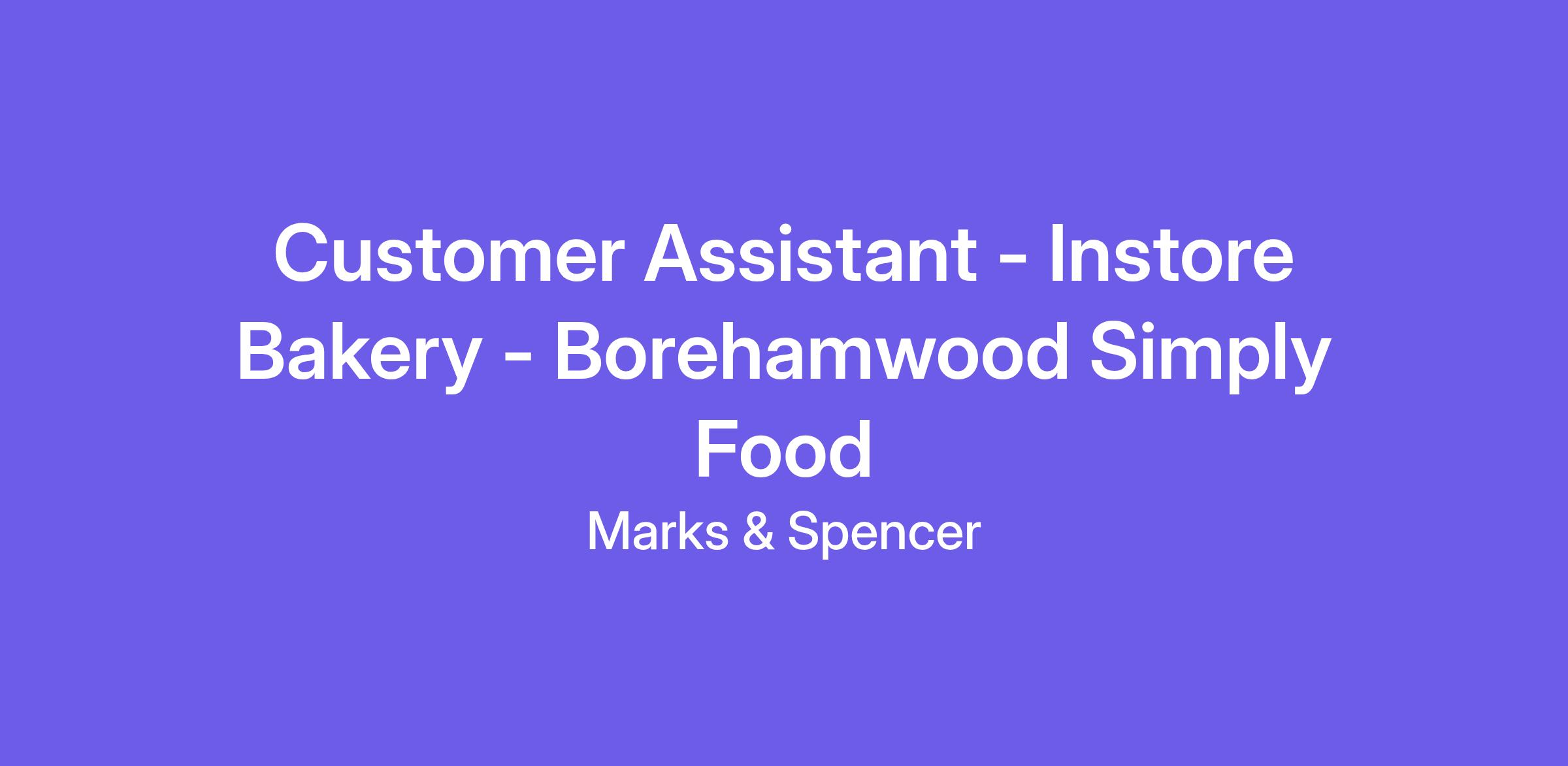 Join our team at M&S as a Customer Assistant in our Bakery section, working at the sharp end of fresh produce, under pressure and with precision. We're seeking passionate individuals with a love for food that strive for perfection every day.