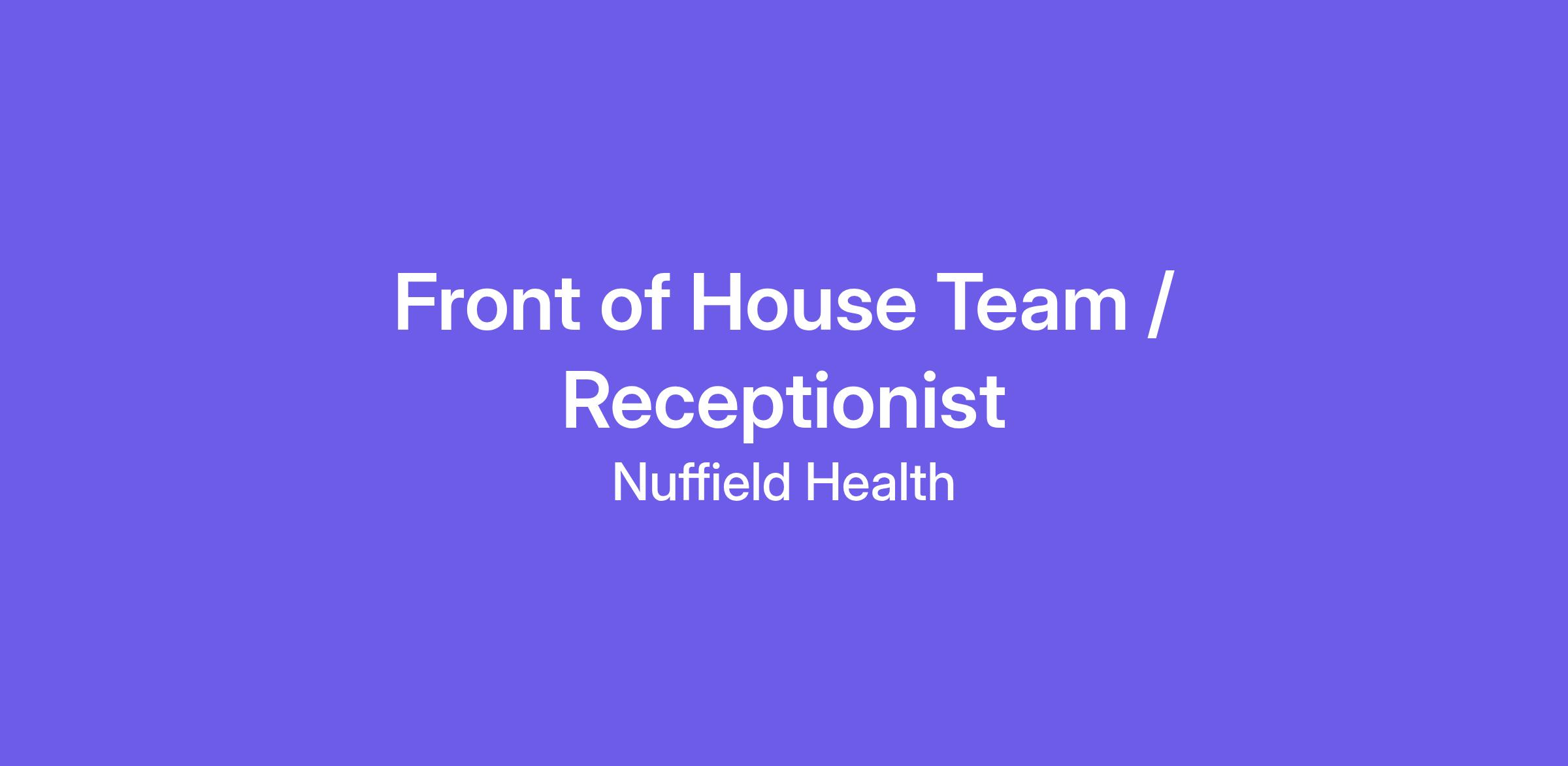 As a Member of the Front of House Team / Receptionist, you will: