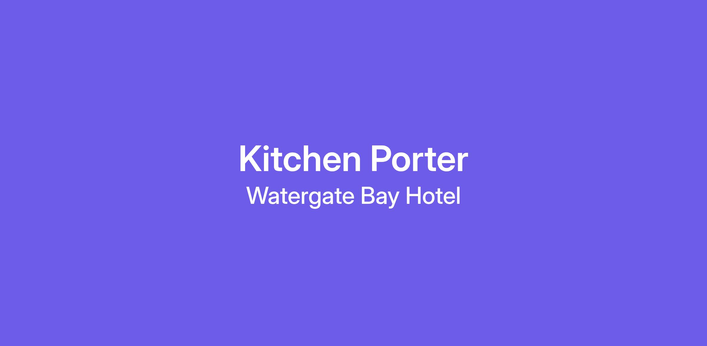 Kitchen Porter (Seasonal) | Watergate Bay Hotel – Zacry’s