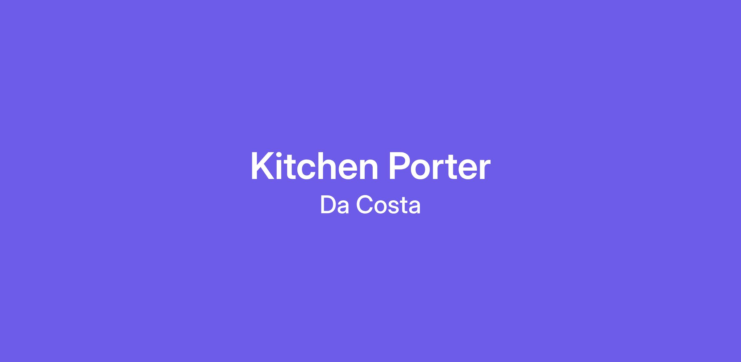 Kitchen Porter, Da Costa Restaurant Somerset
