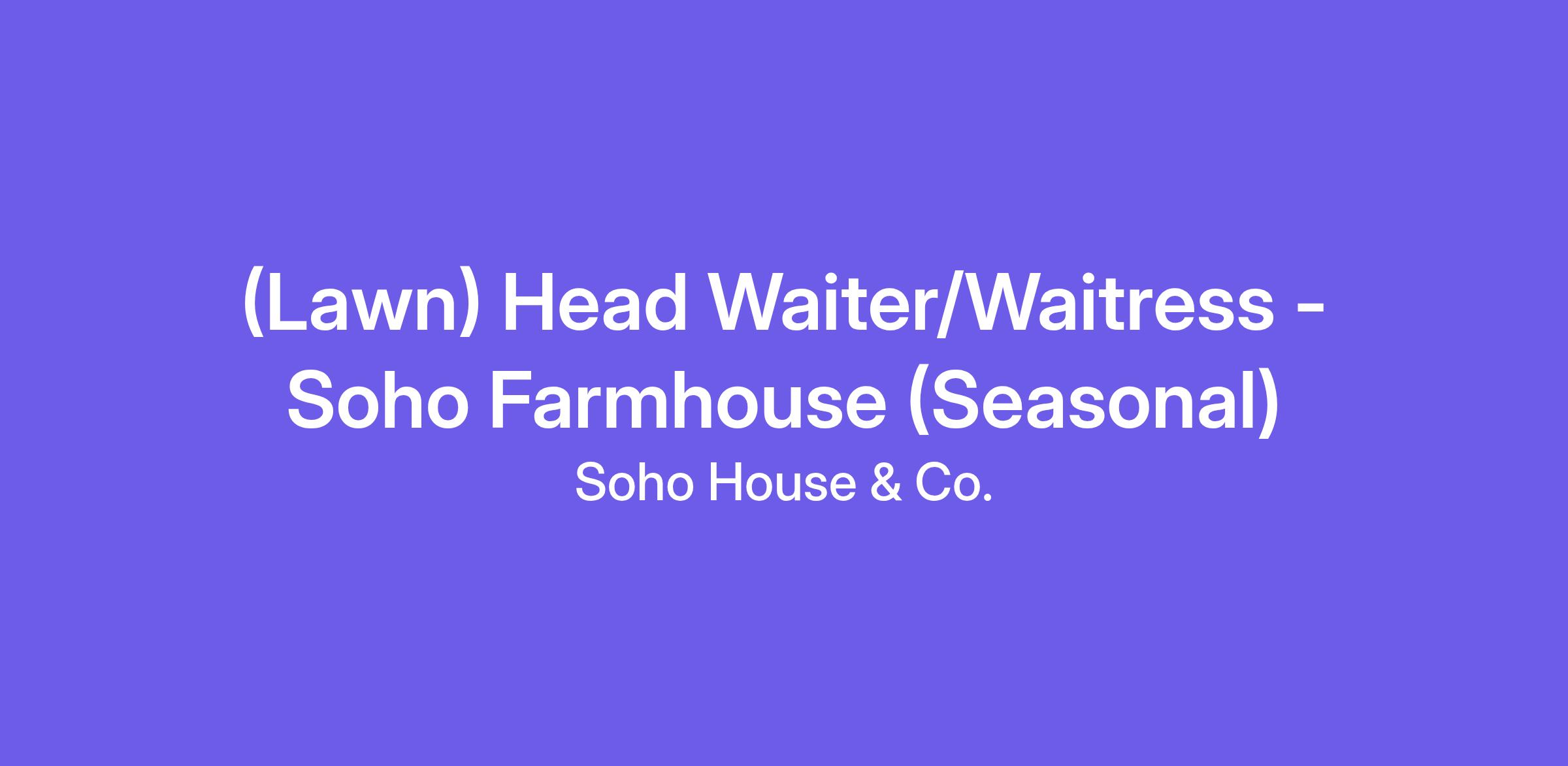 At Soho House, a Head Waiter plays an essential role in delivering exceptional dining experiences for our members and guests. Working closely with the Restaurant Manager and Front of House team, you will oversee service operations on the floor, ensure staff are well-guided and professional, and maintain the high standards that reflect the identity of the club.