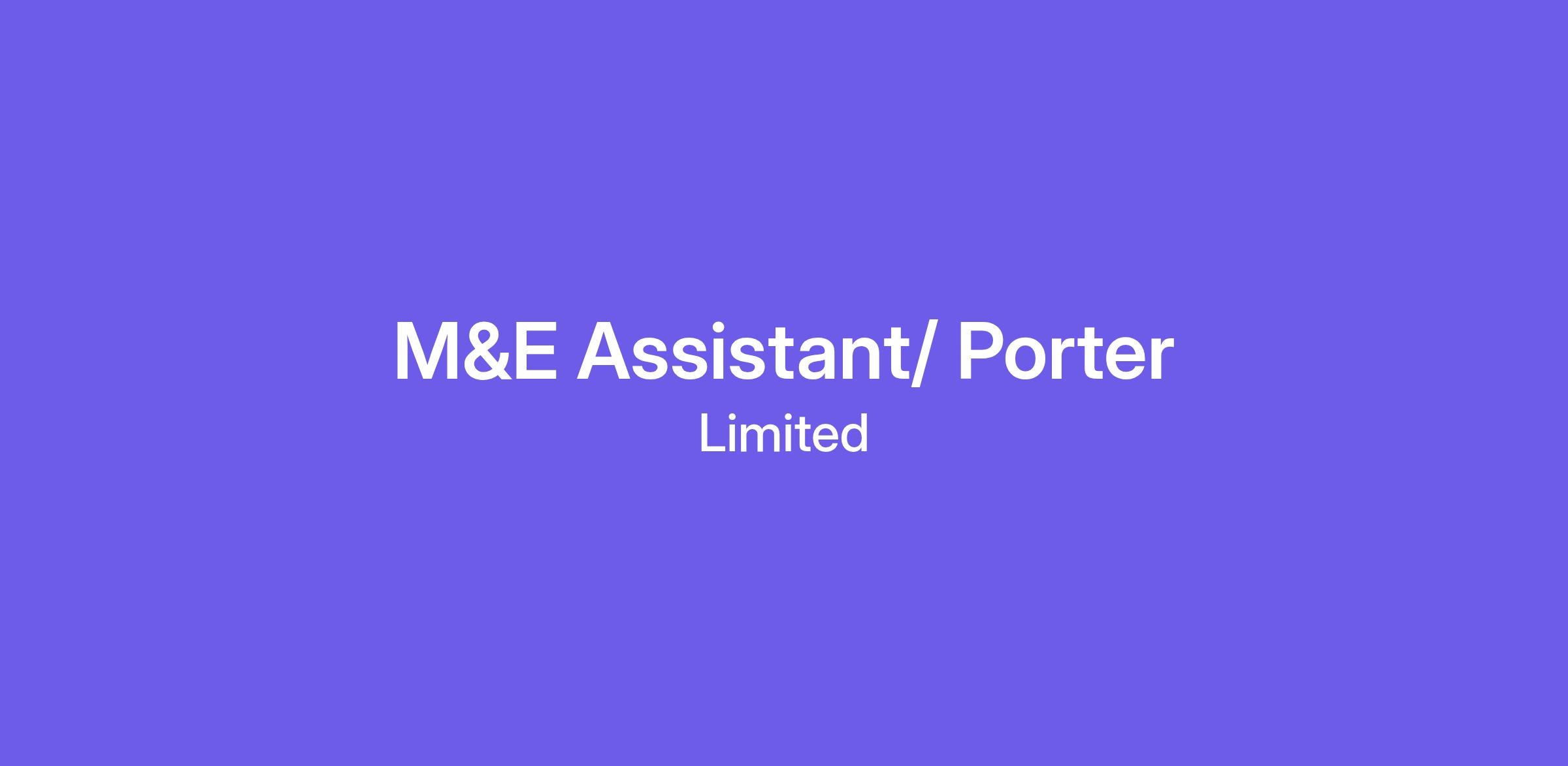 Why come join us as a M&E Assistant/ Porter?We look after our colleagues just as well as we look after our guests. Our regular Learning Bites, “Come Join Us Guest Care” training and Wellbeing webinars all help your progress with us. With support on tap, top-notch practical training and clear progression you’ll be on track for a brilliant future in Hospitality!