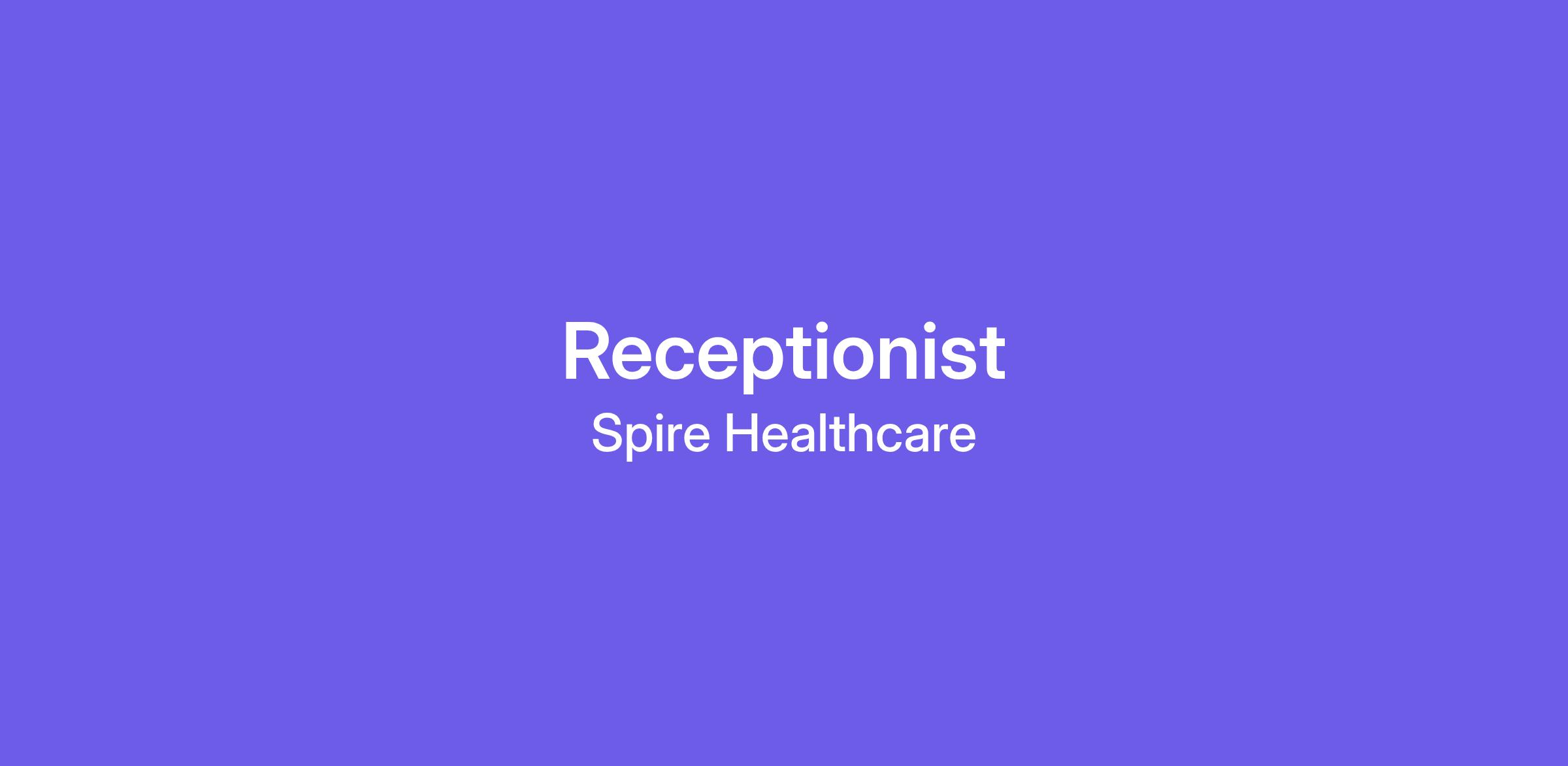 Spire Leeds Hospital have an exciting opportunity for a receptionist to come and join the front of house team on a Part time Basis