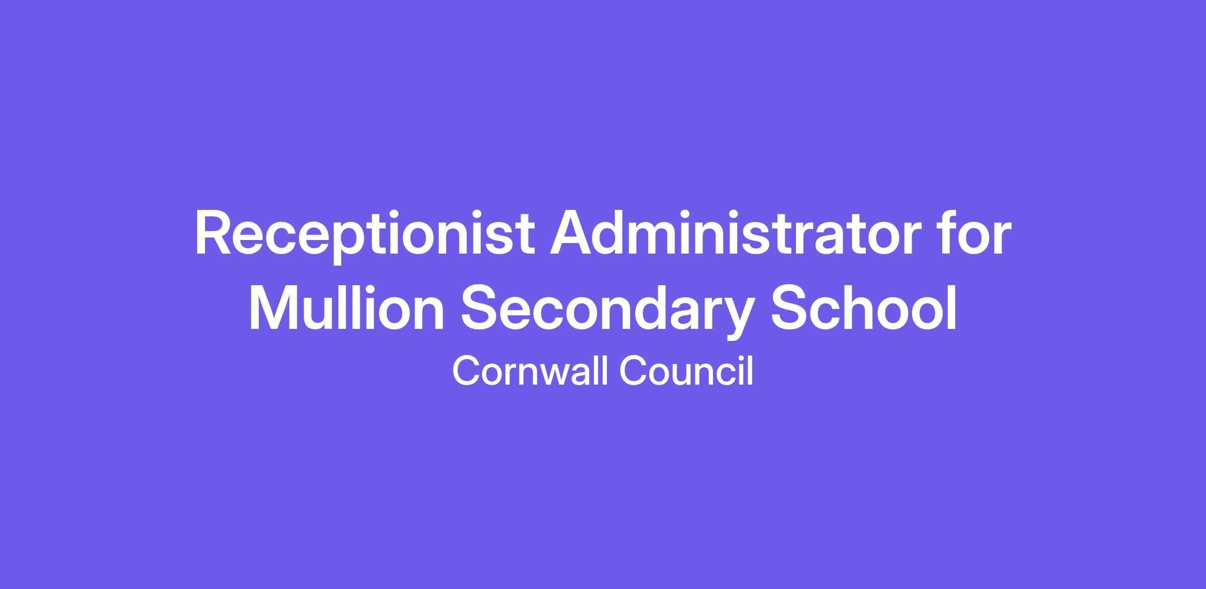 Organisation address Mullion Secondary School, Meaver Road, Mullion, Helston, TR12 7EB