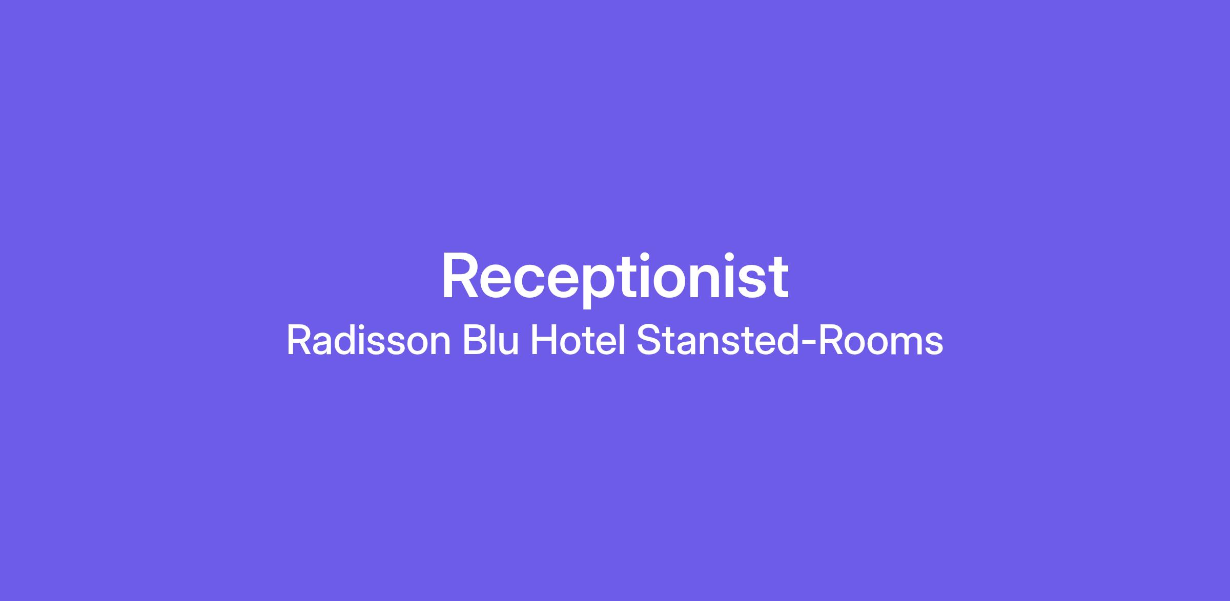 We are now looking for a Receptionist to join our dynamic team here at Radisson Hotel Group!