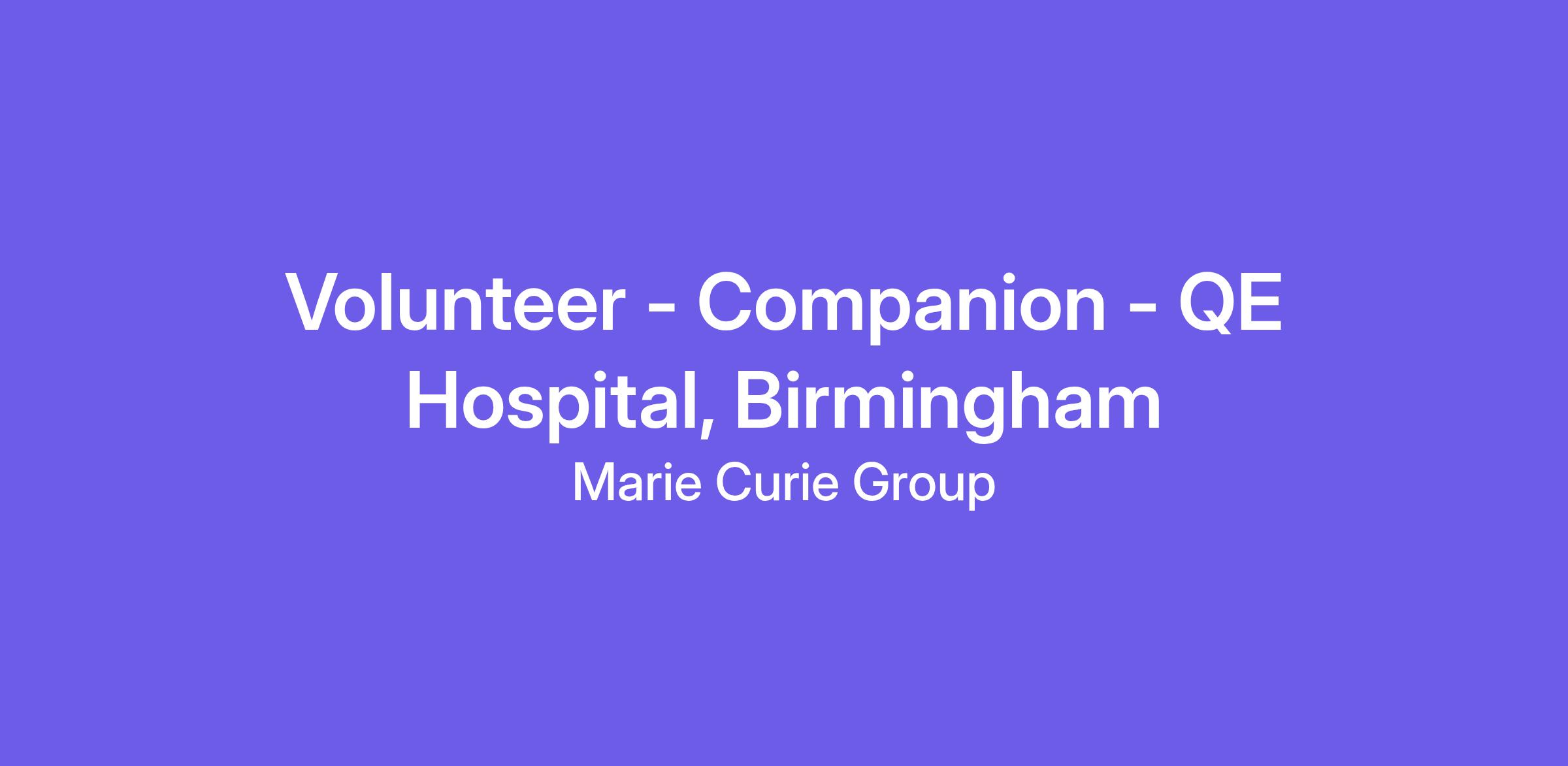 We’d love to tell you about our Companion Volunteer role taking place at the QE Hospital in Birmingham