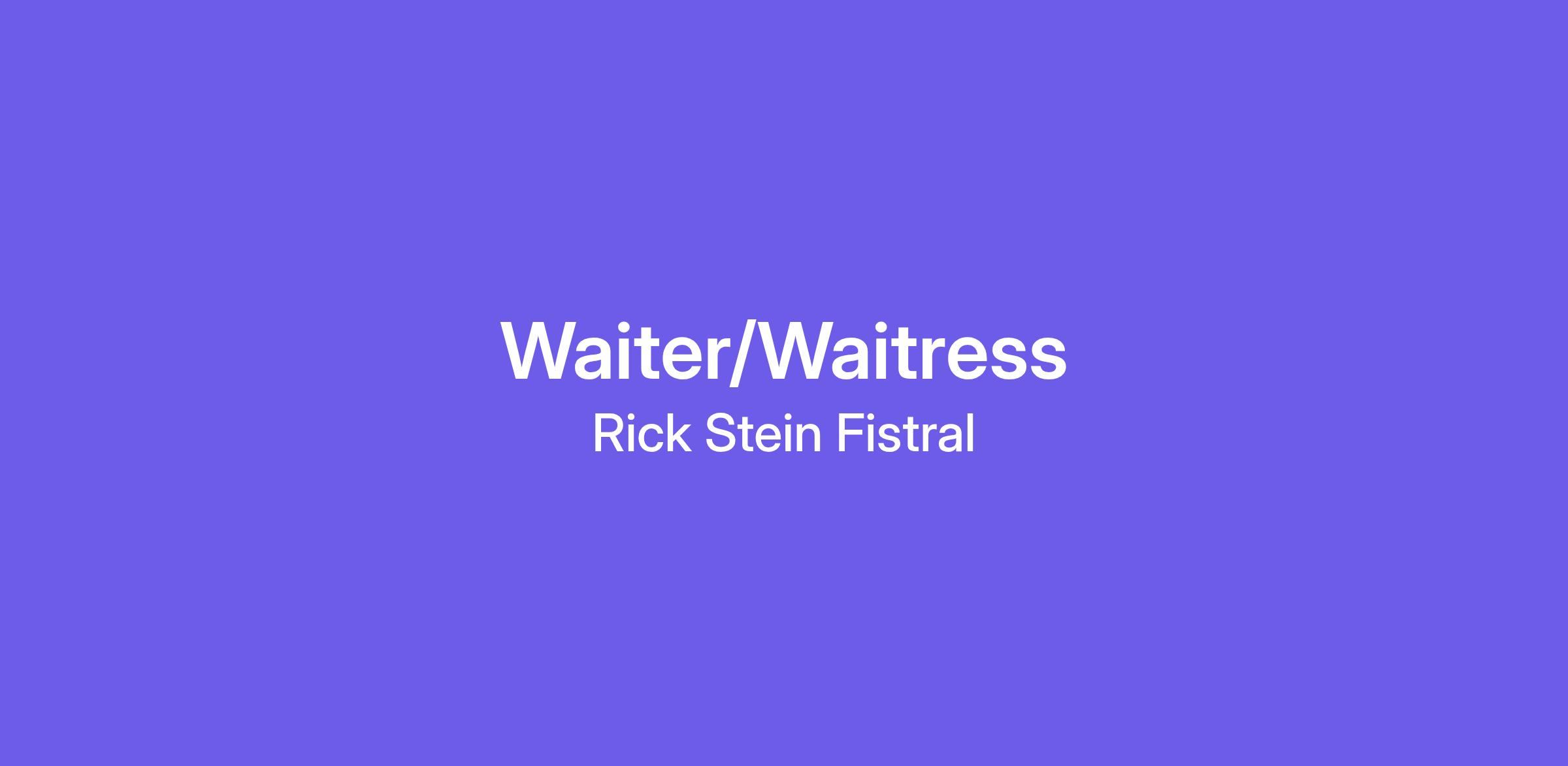 At Rick Stein Restaurants, we’re all about fresh seafood, simple cooking done brilliantly, and making every guest feel genuinely welcome. We’re now looking for an enthusiastic Waiter / Waitress to join our front-of-house team.